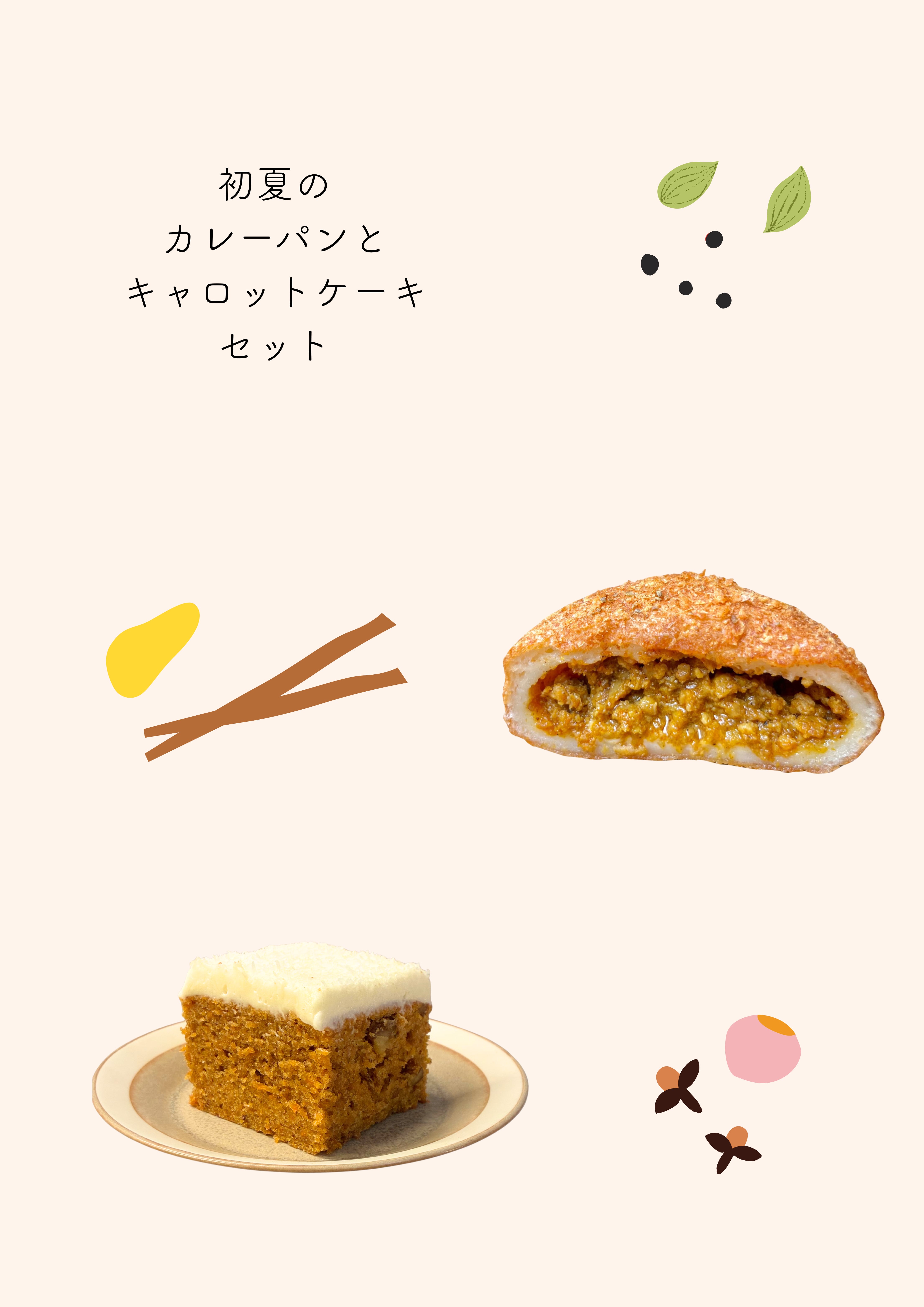 ご家庭でお楽しみいただける、カレーパンとキャロットケーキのお得なセットです。